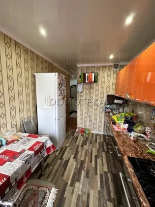 В квартире сделан хороший косметический ремонт. Пластиковые окна, натяжные потолки с точечным освещением, ванна и туалет -кафель. Лоджия застекленная и обшита пластиковыми панелями. Кухонный гарнитур остаётся.